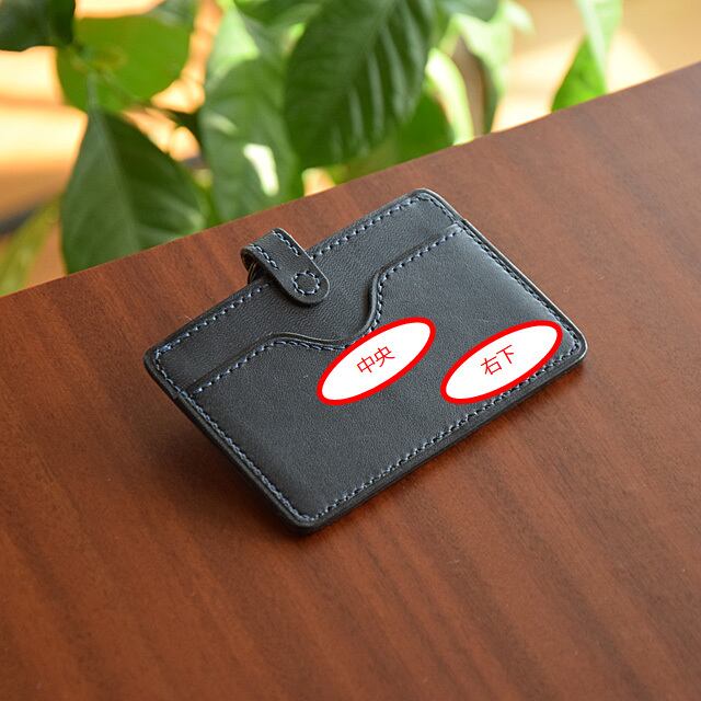 ご希望により、裏面ポケット中央か右下に名前やイニシャルを入れられます。