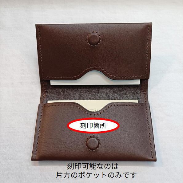 ご希望により、商品写真の"刻印箇所"の場所に、名前やイニシャルを入れられます。刻印可能なのは片方のポケットの一か所のみとなります。